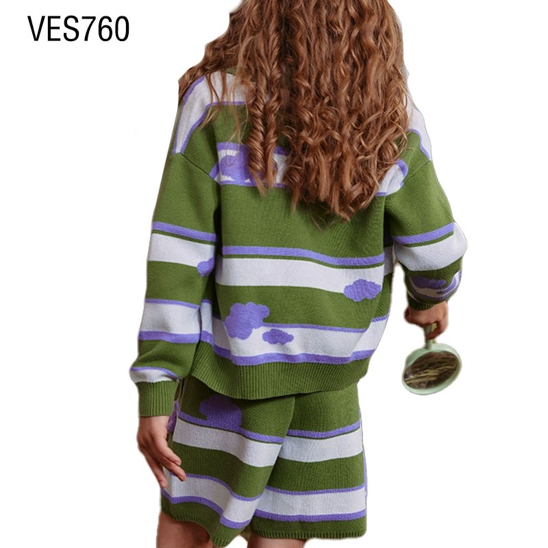 • Customized Children's Set Cute High Quality Single breasted Classic Striped Jacquard Small Cloud Decal Set Made in a Chinese Factory